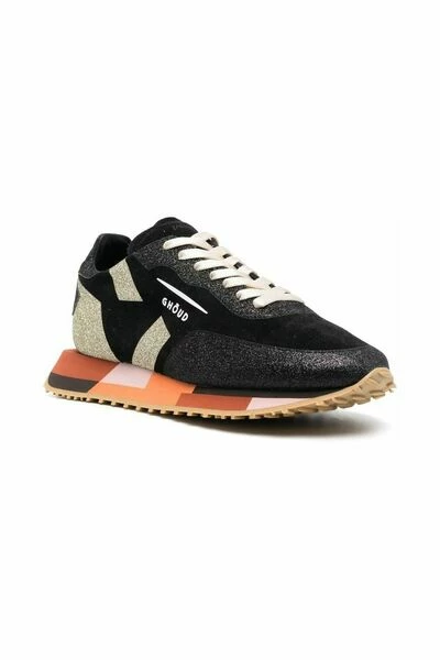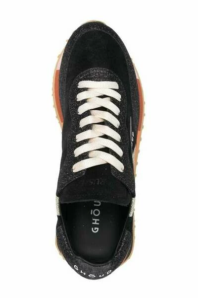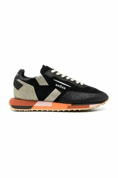 Ghoud Sneakers Black Logo-print veter sneakers van Ghoud met multicolour, logo-print aan de achterkant, veterbeperking vooraan, ronde teen, dikke rubberen zool en kalfslederen mix.