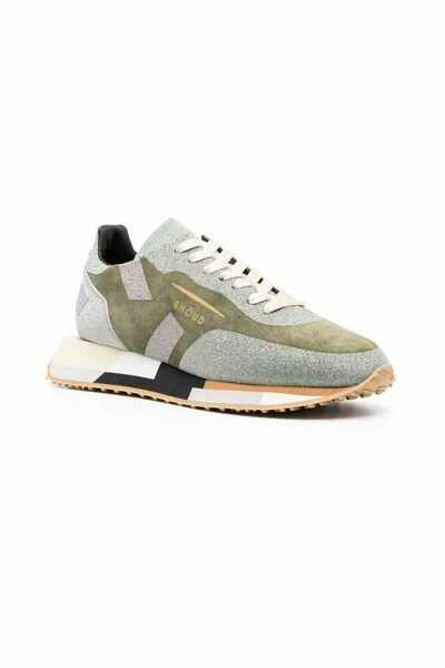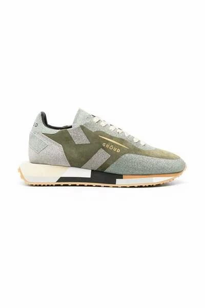 Ghoud Sneakers Pale blauw/kaki groen leer Rush colour-block gliterry sneakres van GHOUD met logo-opdruk op de zijkant, ronde teen, vetersluiting aan de voorkant, een gemerkte binnenzool en een platte rubberen zool.
