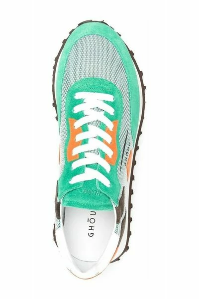 Ghoud Sneakers Rolm Colour-Block sneakers van Ghoud met felgroen, multicolour, kalf leer, kalfsuede, kleurblokpanelontwerp, mesh lambrisering, logo-print aan de zijkant, amandel teen, vooraan veterbevestiging, merkbelasting, merkbelaste hiel Teller en platte rubberen zool.