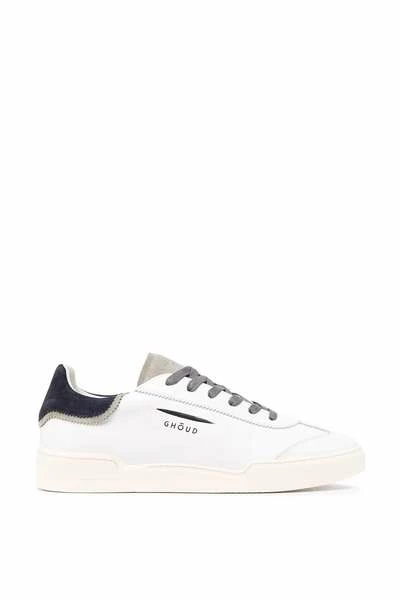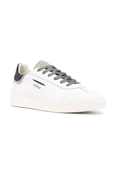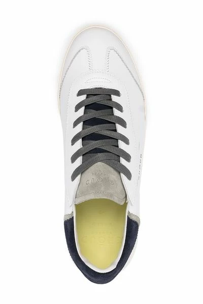 Goudkleurige sneakers met contrasterende details Hoogtepunten wit / donkerblauw leer ronde neus contrasterende veters voorkant vetersluiting merk binnenzool contrasterende hielkap platte rubberen zool Made in Italy Samenstelling Buitenkant Designer Stijl ID L1LMLS09