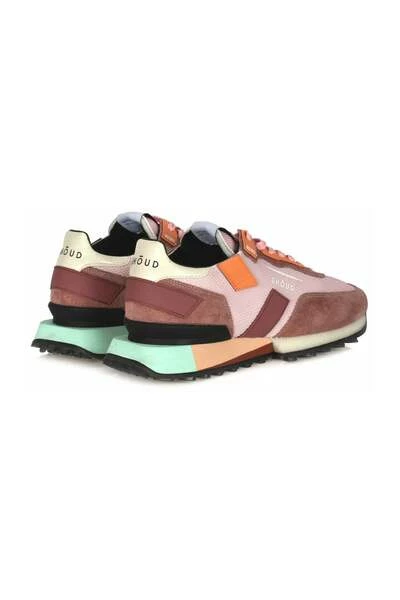 Multicolor sneakers in suede en gaas. Ronde toonhoogte.