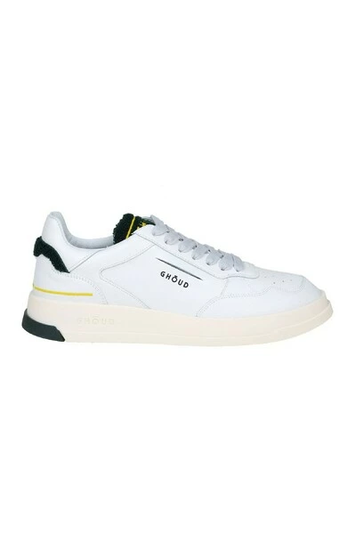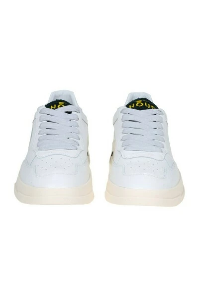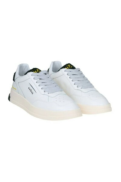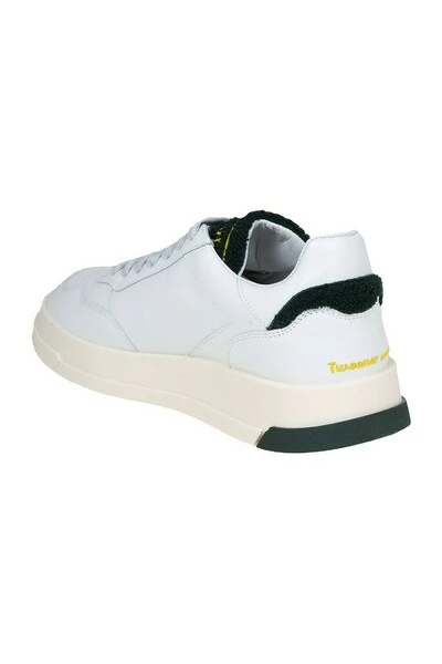 Zachte lederen sneakers witte kleur groen Terry katoenen tong logo op de tongrubberzool met logo sluiting met veters samenstelling 100% leer gemaakt in Italië