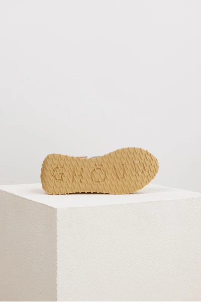 Sneaker van het merk Ghoud. De sneaker heeft een opvallend gekleurde zool en een uitneembaar voetbed. Deze kleurrijke sneaker heeft verschillende suède delen. Uniek Mode maakt gebruikt van de EU maatvoering. Maatvoering: EU 37/38/39/40/41 Materiaal: leer Pasvorm: Valt op maat